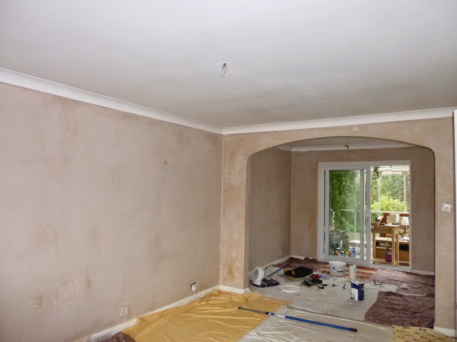 Continued stripping wallpaper (I should probably mention that the anaglypta wallpaper ruined the painted surface underneath, which is why we had to have the walls skimmed. You wouldn't normally expect to skim walls in a 1980s house, but the only other option was to wallpaper, and I don't like wallpaper...)